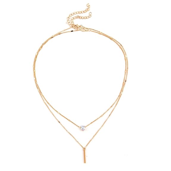 Shining Diva Fashion Stylish Multilayer Crystal Chain Pendant Necklace for Women and Girls (14563np), Gold