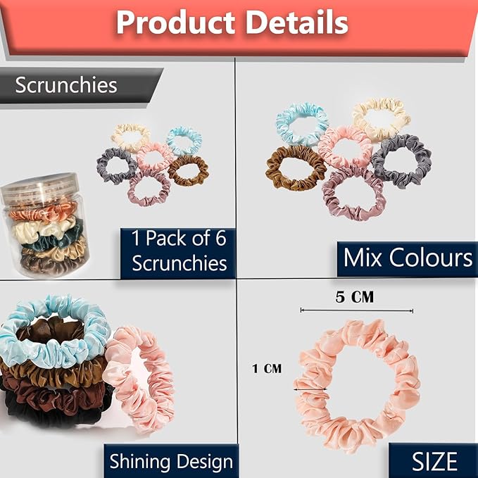 hair accessoriesTEMPERIA (6 pcs) Silk Satin Scrunchies For Women & Girls with Box – Stylish Luxury Ponytail Rubber Band Ties for Hair – (Random Colors)